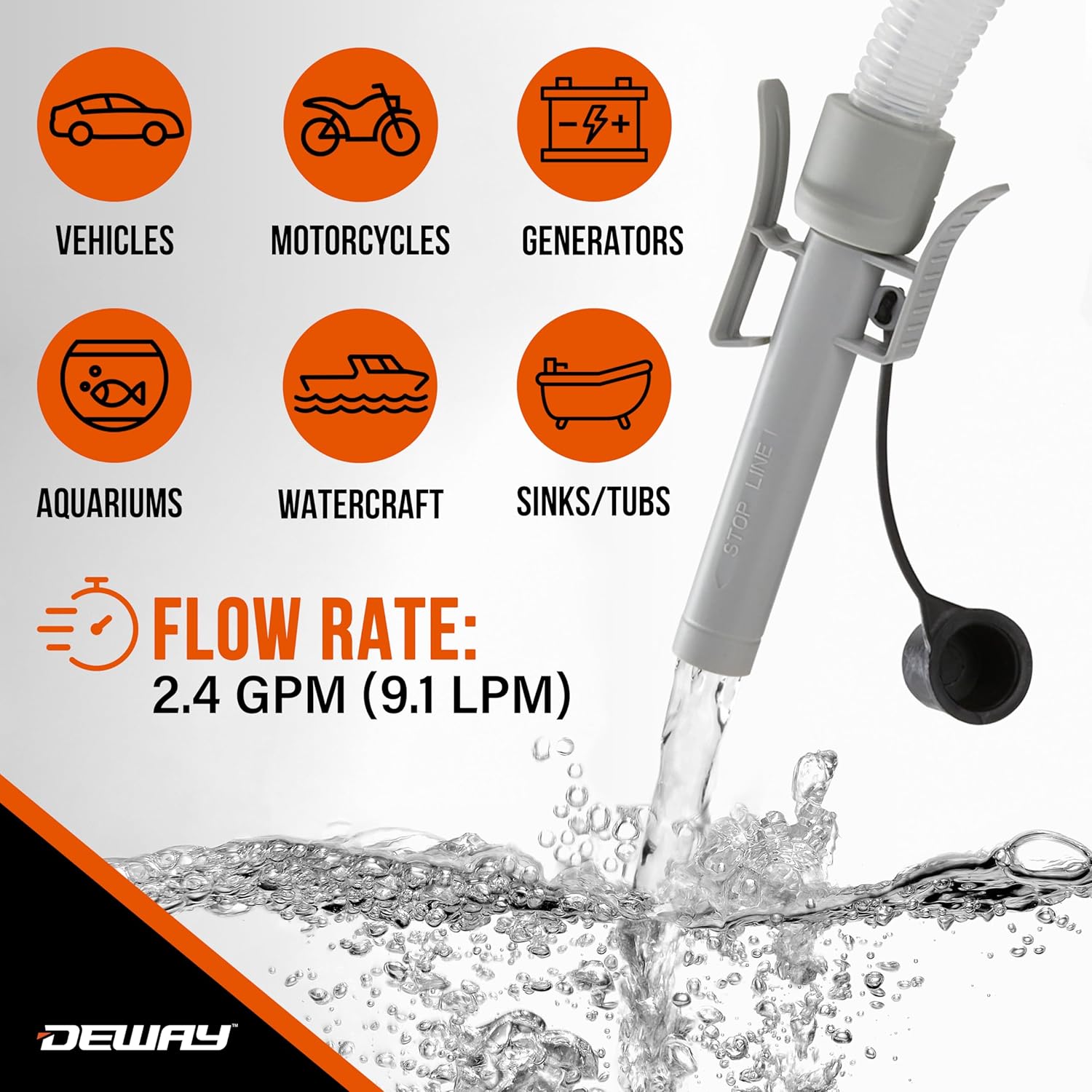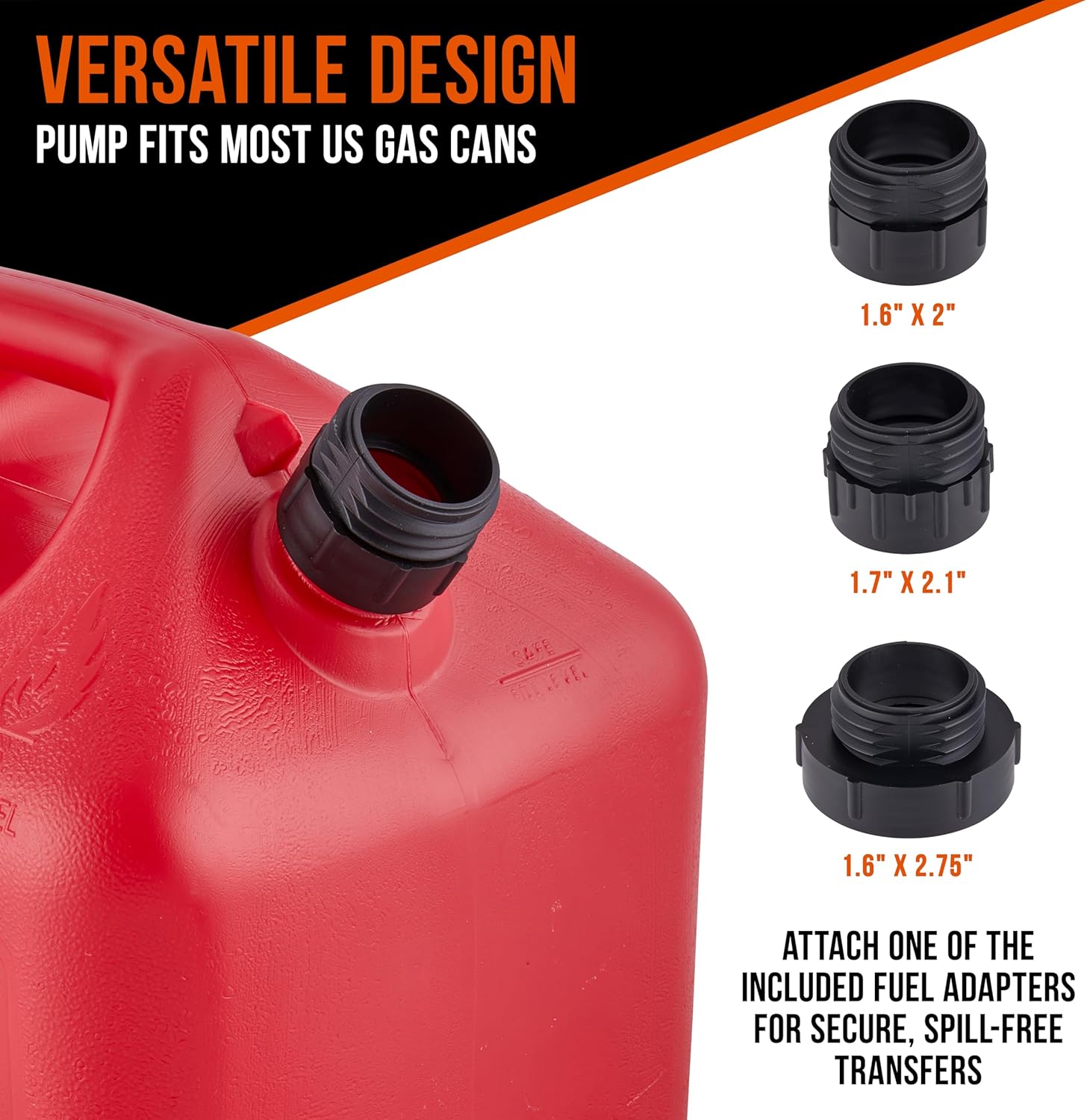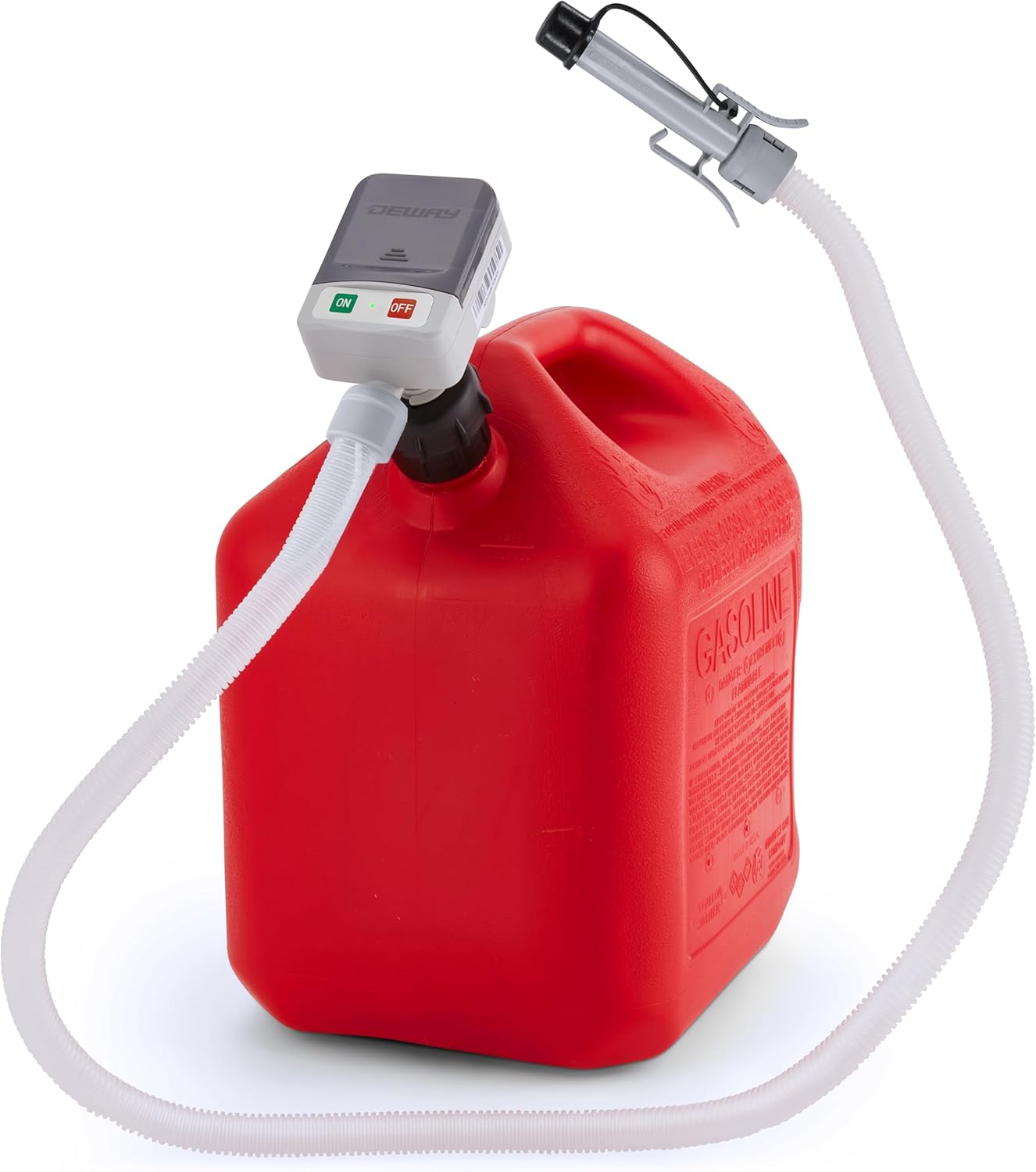 DeWay Fuel Transfer Pump for Gas Can with Precision Auto-Shutoff Nozzle | Fast 2.4GPM Flow Rate, Long 51” Hose, 4 AA Battery Power & 3 Fuel Adapters for Gasoline, Kerosene, Diesel & Non-Potable Water