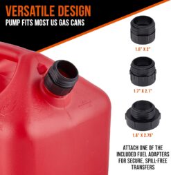 - WIDELY COMPATIBLE WITH CANS, VEHICLES & MORE | Each Fuel Transfer Pump Comes with [3] Twist-On Adapters, Making Our System Compatible with a Diverse Range of North American Gas Cans from Brands Like Midwest, Scepter, Garage Boss, No-Spill, VP Racing, Etc. | Just Screw the Ring Onto the Vessel Opening, Insert the Intake Tube & Extend the Hose to the Tank of Your Car, Truck, Motorcycle, Moped, Scooter, ATV, Watercraft, Generator, Snowblower, Lawnmower or Leaf Blower