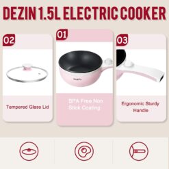 - Small in storage – This Dezin electric cooker, with a capacity of 1.5L (representing its full load capacity when the pot is covered with the lid), is compact in size and easy to store. It is particularly suitable for individuals living in dorms without stoves or those who prefer not to rely on takeout. Moreover, if you are planning a trip or a picnic, this portable pot will be your best companion on the go!