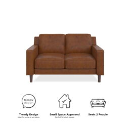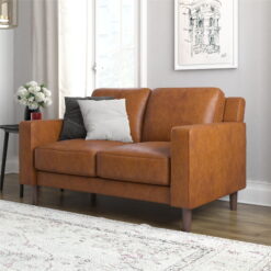 DHP Bryanna Loveseat 2 Seater Sofa , Camel Faux Leather