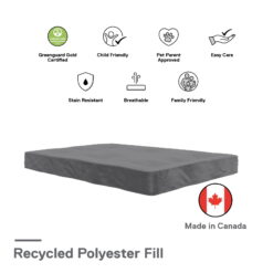 Stay inside and enjoy the ride with the DHP Caden 8″ Thermobonded High Density Polyester Fill Futon Mattress. Designed for any full-size futon frame (sold separately), the Caden quickly folds from a sleeping to a sitting position for hassle-free use and just as easily works as a fun floor mattress for movie nights and playdates. Its medium-support thermobonded high-density polyester core possesses essential moisture-wicking properties for the desired breathability that teens, children, and overnight guests will welcome. Its lightweight construction allows easy movement for carry-and-go set-up in any space, whether it’s your basement den, child’s playroom, spare bedroom, or even your home office. And when it’s not needed, simply fold it up for handy closet storage. Featuring a durable polyester knit cover, its kid and pet-friendly fabrication is not only water repellent but also easy to wipe clean, while its tufting details provide a stylish backdrop that helps retain mattress shape. Canadian-made with eco-conscious construction, it contains 50% recycled polyester fibers, and its clean credentials are solidified by its GreenGuard Gold Certified status, recognizing that it has passed stringent indoor air quality testing. Available in multiple colors and thickness options.