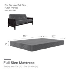 DHP Caden 8 Inch Futon Mattress with Tufted Cover and Recycled Polyester Fill, Full Size, Gray