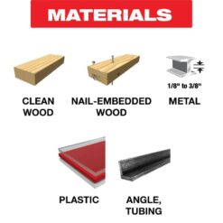 - Ideal for cutting wood, nail-embedded wood, ferrous metal ranging 1/8 in. to 3/8 in., plastic and PVC pipe material