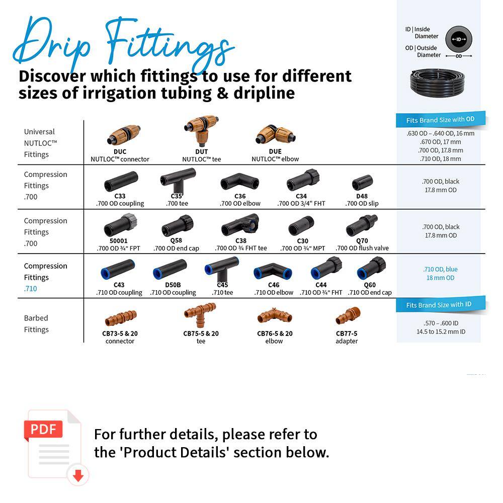 - Use with DIG’s black compression fittings, 17 mm barbed fittings and nut lock fittings