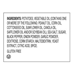 Potatoes, Peanut Oil Or A Blend Of Peanut Oil And Canola, Corn, Or Sunflower Oil, Sea Salt, Sugar, Black Pepper, Onion Powder, Garlic Powder, Dextrose, Corn Starch, Maltodextrin, Yeast Extract, Citric Acid, Spice.