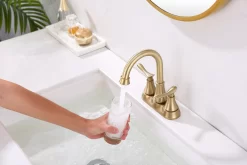 2 Handle Bathroom Sink Faucet, 4″ Lavatory Vanity Faucet, Centerset Faucet with Pop-up Drain & Supply Lines (Gold)