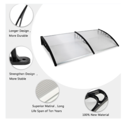 Build a mini shelter for resisting rain or scorching sun at the gate or window! You may feel it wonderful by using our 200 x 100 Household Application Door & Window Rain Cover Eaves Canopy! This is a superb design integrating high-class ABS and polycarbonate materials, durable and wear-resistant to use. Aluminum bracket could strongly sustain this canopy. It bulges to shape a small shield. Quite easy to install and remove! It also acts a decoration for your house! Don’t miss such a good chance!