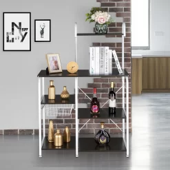Functional Kitchen Baker’s Rack Utility Microwave Oven Stand Storage Cart Workstation Shelf, Black 35.43 x 16.54 x 51.77