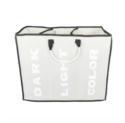 3 COMPARTMENT LAUNDRY SORTER The laundry basket is divided into three big parts, it contains 3 compartments, not 3 laundry bags. Our clothes can be put into the corresponding color/light/dark sorting area clearly, to avoid dyeing each other and distinguishing the clothes of different individuals.