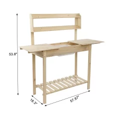 Wooden Garden Workbench Sliding Table Top Yellow Wood 39.37 x 18.11 x 55.12
