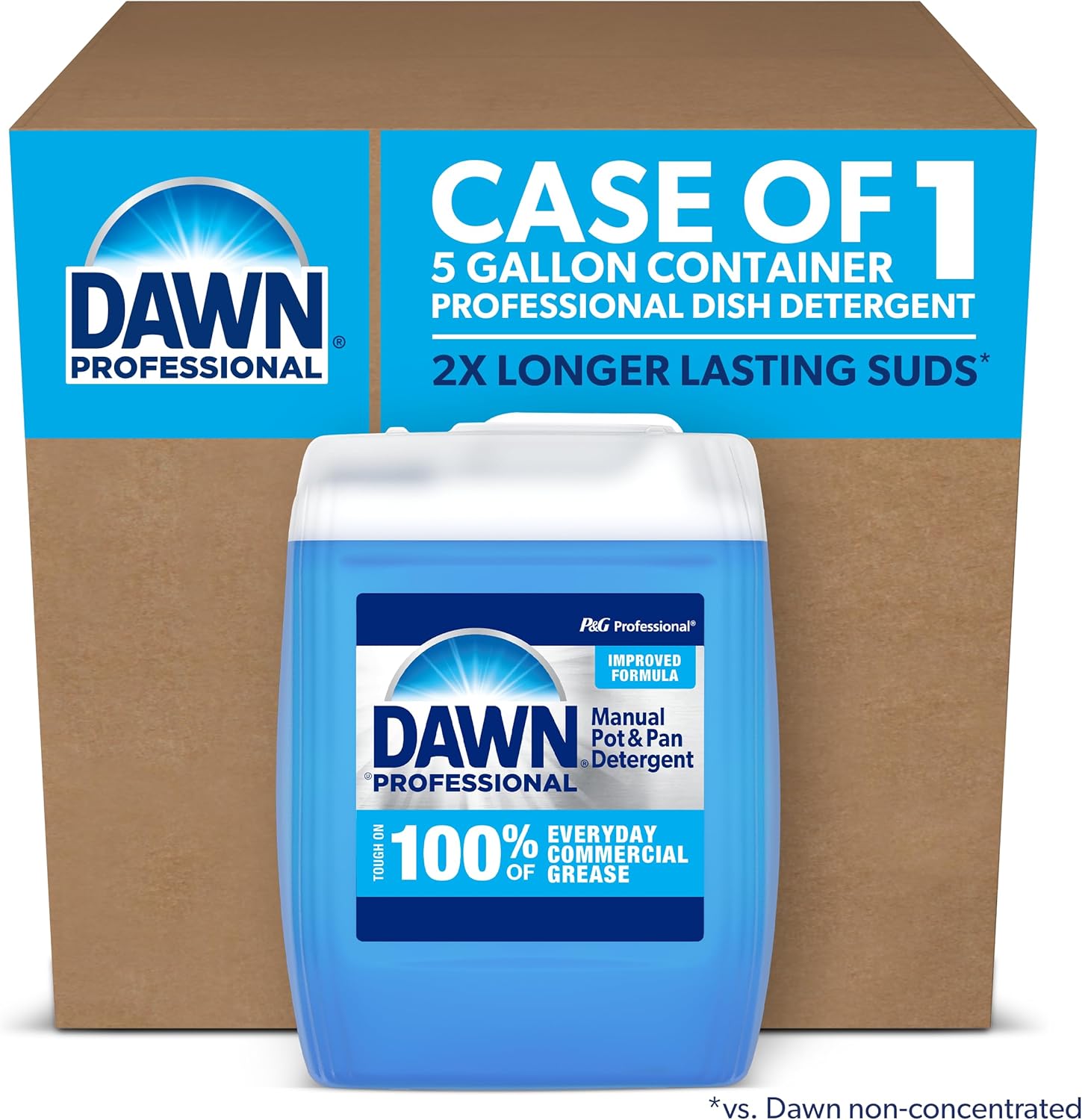 - Dawn Professional dishwashing detergent with long-lasting suds cleans 58percent more greasy pots and pans per sink (vs. Dawn non-concentrated)