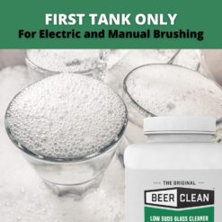 Follow label directions. General use instructions • Thoroughly clean the sinks with a small amount of glassware cleaner prior to glass washing. Also, use clean brushes that are not worn. • Set up sinks in four easy steps: 1. Fill first tank with hot or cold water almost to the top of the brushes. Add Beer Clean™ Mineral Solvent, if needed, based on local water-hardness conditions. 2. Add Beer Clean™ Glass Cleaner to the first sink, accurately measuring proper amount required or by sprinkling a pre-measured packet over the brushes. 3. Fill the second tank with clean, hot or cold, continuously flowing water. This tank is used to rinse off detergent from glassware used in the first sink. 4. Fill third sink with three gallons (11.5 liters) of hot or cold water. Add ¼ oz. Beer Clean™ Last Rinse Sanitizer. • Wash glasses in the first sink, making sure that all glass edges come in contact with the brushes. If a three-brush manual system is used, clean glasses on the center brush. • Rinse glassware in the second sink by placing the bottom of the glass in the water first, at an angle. If immersed top first, an air pocket can form, preventing complete rinsing. Withdraw the glass at an angle, bottom first (“heel in, heel out” technique). If you only have a two-tank system, do not include a rinse sink. • Submerge glassware in sanitizing rinse solution (third sink) by using the “heel in, heel out” technique. Allow to remain immersed for at least 2 minutes. Follow national food service sanitation guidelines and local health codes for sanitizing. • Air dry sanitized glassware upside down on a deeply corrugated drain board to allow maximum air flow. Do not dry glasses with towel, since it can leave lint on the glass and transfer germs and odors. Do not store glasses on a towel, rubber drain pad or any smooth surface.