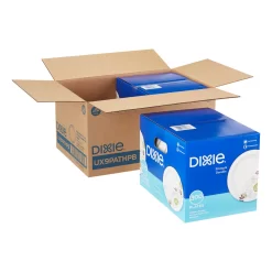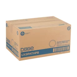 Dixie® Medium-Weight Paper Plates are ideal for every day, featuring the Soak-Proof Shield® that prevents moisture and grease from leaking through, as well as multi-layer coatings that add strength. These quality paper plates are great for medium-weight foods and are microwaveable and cut-resistant. The distinctive Pathways® pattern coordinates with other Dixie® paper plates, platters, bowls, cups and more, creating a unified, attractive table setting. The 8.5″ plates, shown here in a case of two 300-plate dispenser boxes (UX9PATHPB), are also available in half-size case of 500 plates, are also available in a half-size case of 500 plates (UX9WS) and a full-size case of 1,000 plates (UX9PATH). Dixie® Medium-Weight Paper Plates in bulk are also available in a 7″ size (UX7PATH).