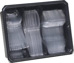 Provide your guests with quality, crystal plastic cutlery. For convenience, the cutlery comes in a reclosable tray—so you can just store it and use it at the next gathering. Includes 180 pieces per pack—60 each of forks, knives and teaspoons.