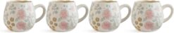Dorotea Hand Painted Coffee and Tea Mugs, 16 Ounce, Set of 4, Assorted