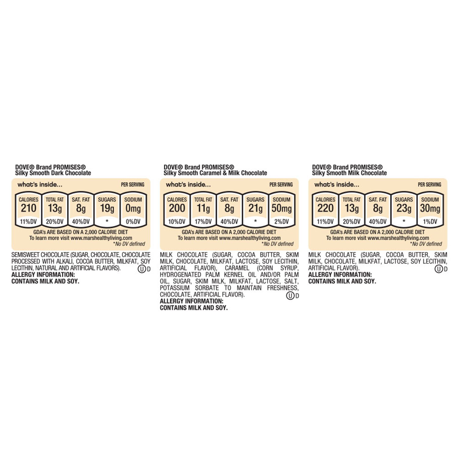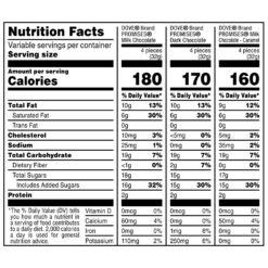 Find everyone’s favorite DOVE Chocolate flavor with the DOVE PROMISES Chocolate Candy Variety Mix. Featuring three delicious assorted chocolates: DOVE PROMISES Silky Smooth Milk Chocolate, DOVE PROMISES Dark Chocolate and DOVE PROMISES Caramel Milk Chocolate Candy. Each piece of delicious chocolate is made with fine quality cacao for an indulgent, rich chocolate experience. Best of all each individually wrapped candy piece shares a special message under the foil wrapper that will make them smile. Because DOVE Chocolate creates chocolate indulgences and only chocolate indulgences, careful attention is paid to quality, ensuring a silky smooth texture and delicious taste.