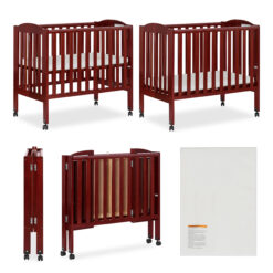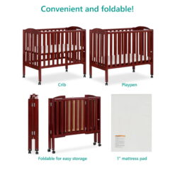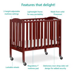 Dream On Me 2-in-1 Folding Portable Mini Crib, Cherry