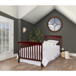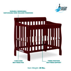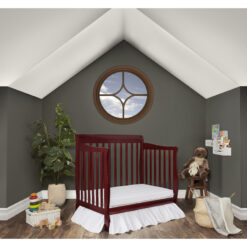 Dream On Me Aden 4-in-1 Convertible Mini Crib In Cherry, Greenguard Gold Certified
