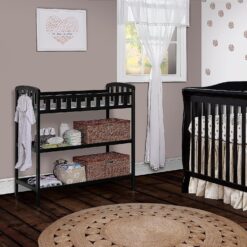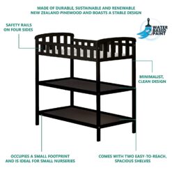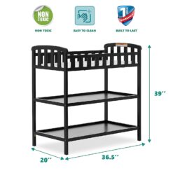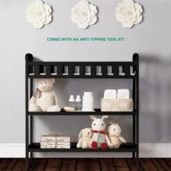 Dream On Me Emily Changing Table In Black, Comes With 1″ Changing Pad, Features Two Shelves, Portable Changing Station, Made Of Sustainable New Zealand Pinewood