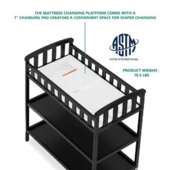 - SAFETY MATTERS: With safety rails on four sides the changing table is a fully enclosed & secure space. It is tested for lead/other toxic elements and meets applicable CPSC/ASTM standards. Comes with an anti-tipping tool kit. Weighs 19.5 lbs