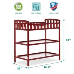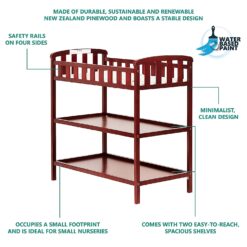 Dream On Me Emily Changing Table In Cherry, Comes With 1″ Changing Pad, Features Two Shelves, Portable Changing Station, Made Of Sustainable New Zealand Pinewood