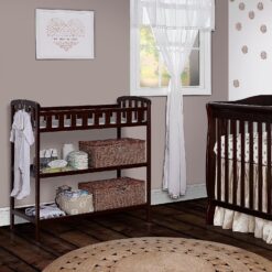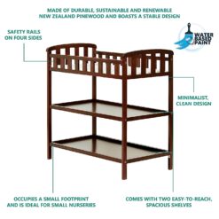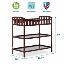 Dream On Me Emily Changing Table In Espresso, Comes With 1″ Changing Pad, Features Two Shelves, Portable Changing Station, Made Of Sustainable New Zealand Pinewood