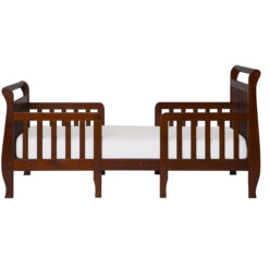 Brings a colorful charm to any toddler’s room with its attractive solid wood, sleigh design. With a low to the floor design, it is ideal for your toddler to safely get in and out of bed. It is reinforced for stability with center legs and comes complete with four side safety rails for added security in beautiful non-toxic finishes. It is the perfect transition for toddlers, who have outgrown their cribs but are still too small for an adult bed. It converts from a toddler bed into two child chairs and a table to adapt to your growing child and complement any room setting. Conversion kits, mattresses, and bedding are sold separately. Dream On Me Emma 3-in-1 convertible toddler meets all applicable ASTM and CPSC standards.
