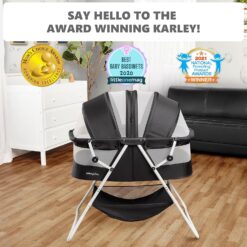 - ROOMY INTERIORS: With dimensions of 34.5Lx19.5Wx37H inches, the Karley is as spacious as they come . The roomy, airy bassinet features an adjustable double canopy that keeps bugs away; there is also a large storage bag to hold your babies’ essentials