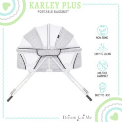 Dream On Me Karley Plus Portable Quick Fold Bassinet with Removable Canopy in Cool Grey