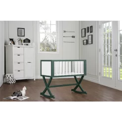 STYLISH DESIGN: Sleek straight lines underline a contemporary aesthetic. Its solid side panel adds a bold pop of colour; the x-cross base allows parents to gently rock their babies to sleep. Choose from 8 versatile single/dual-tone non-toxic finishes