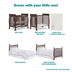 Dream On Me Piper 4-in-1 Convertible Mini Crib, Espresso
