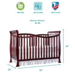 Designed with timeless appeal, the Violet 7-in-1 Crib from Dream On Me is built to grow with your child. It features a beautiful flowing design that will coordinate with a wide variety of decorative styles. This unique 7-in-1 crib can transition easily to a comfy toddler bed, daybed, youth bed and full size bed as your child grows. It is also equipped with an easy-to-use four-position mattress support system for added adaptability. This crib is available in a range of finishes. All Dream On Me cribs meet all applicable ASTM and CPSC standards.