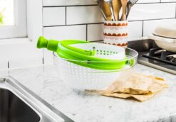 - NO MORE SPLASH | Keep your countertops dry and avoid splashing water everywhere. The Spina salad spinner fits perfectly into the sink when you want to give it a spin, keeping the water where it’s meant to be.