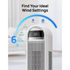 - Multiple speed options: with 6 speed levels and 4 modes (sleep, auto, natural, normal), this fan lets you customize your cooling experience from a soft breeze to strong winds