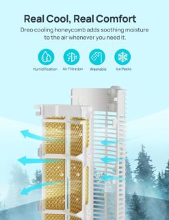 Dreo Cooling Fans That Blow Cold Air, 40″ Evaporative Air Cooler, 2023 Upgrade Tower Fan for Bedroom with 80° Oscillating, Ice Packs, Remote Control, 3 Modes 4-Speed Quiet Floor Fan Home/Office