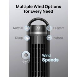 - Multiple speed options: with 9 speed levels and 4 modes (Sleep, Auto, Natural, Normal), this fan lets you customize your cooling experience from a soft breeze to strong winds