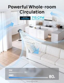 - Ultra Quiet DC Motor: Don’t sacrifice performance for quietness, it reduces noise down to 23dB, making it the ideal quiet fan for bedtime or working without distractions. Thanks to the DREO brushless DC motor combined with turbine style blade technology, it circulates the air quickly throughout the room.