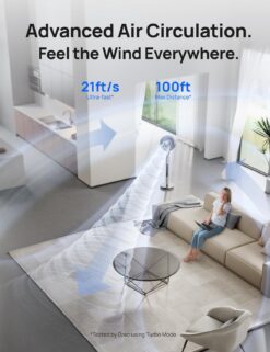 - Stale air go away: This innovative air circulator fan propels refreshing air at speeds up to 21ft/s and covers distances of up to 100ft, reaching every corner of the room. Breathe easy and enjoy fresh air no matter if it’s your bedroom, living room, or office.