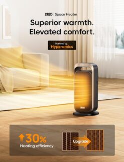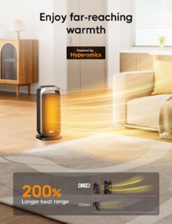 - Powerful heat for any space: This Dreo Solaris 317 indoor space heater utilizes an Hyperamics 1500W advanced PTC system to provide rapid heat delivery and improve the circulation of warm air. Compared to traditional heaters, Solaris 317 can reach areas up to 200% farther, ensuring efficient and widespread heating in an instant
