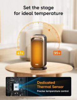 - Always at the perfect temperature: This electric heater with Thermostat allows you to set your desired heat level within a wide range of 41-95℉ with ±1℉ increments, ensuring precise and efficient heating. This feature not only keeps you comfortable but also helps save energy