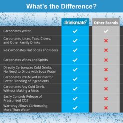 - POWERED BY FOOD GRADE CO2 GAS: Compatible with all brands of standard 60L CO2 threaded cartridges in North America (including Drinkmate, SodaStream blue label and Soda Sense). Exchange empty cylinders with Drinkmate’s convenient online exchange program.