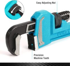 - Drop forged and heat treated jaws in high quality steel resist distortion or breakage, offer professional enhanced durability and maximum torque. The teeth are sharp, high hardness and wear resistance. For the exquisite manufacture, the teeth of the wrench is precise. It can grip pipes securely and tightly.