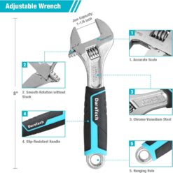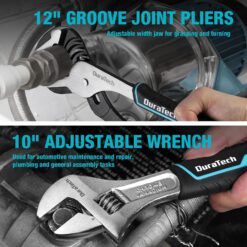 DURATECH 8-Piece Pliers Set with Rolling Pouch, Premium Cr-V/Cr-Ni Construction, (12″, 10″, 8″ Groove Joint Pliers, 8″ Adjustable Wrench, 8″ Linesman, 6″ Long Needle Nose, 6″ Slip Joint, 6″ Diagonal)