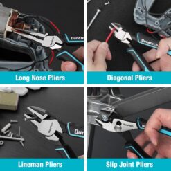- Mechanic Pliers Tool Set: DURATECH 8-Piece Pliers Set for mechanics is great for gripping small parts, bending, shaping, twisting wire, crimping sheet metal, working with fasteners, and more. All pliers with the hardened cutting edge for cutting effortlessly