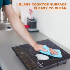 - 170-MINUTE TIMER & EASY CLEANUP SURFACE: this induction stove with simple control knobs is very easy to operate. Built-in countdown digital timer programmable in 1-minute increments up to 170 minutes) allows for “set it and forget it” stock-making, steaming, slow-cooking and other tasks. Glass cooktop surface is easy to clean using only damp towel.