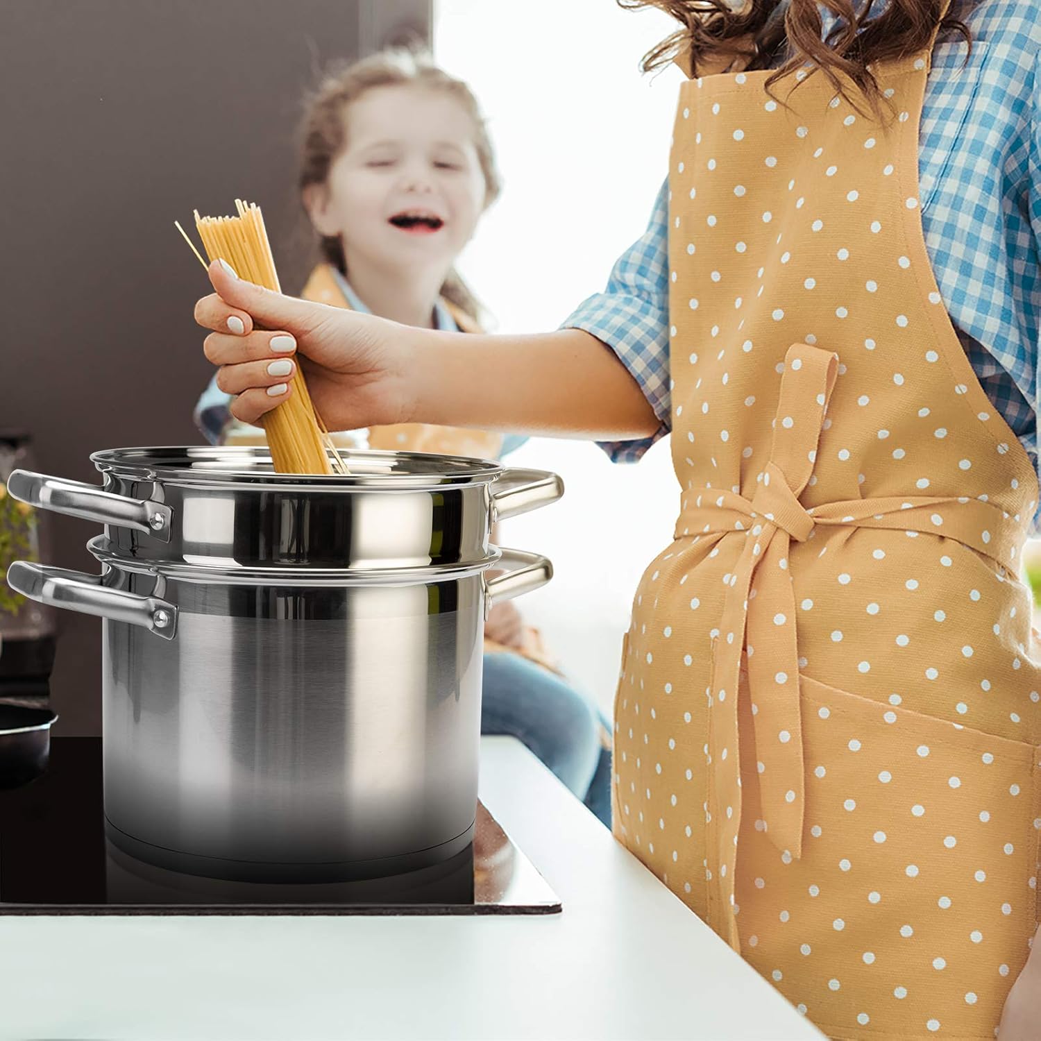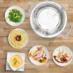 - VERSATILE SET: This stockpot has two steamers inside with pasta insert and steamer basket, durably constructed . Pasta pot cooks a variety of food such as pasta, potatoes, and grains; deep steaming pot holds a large amount of vegetables