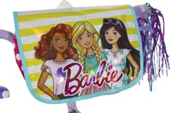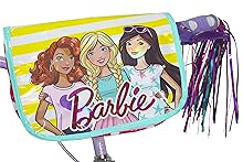 - Barbie handlebar bag, colorful streamers, adjustable padded seat, clear grips, and Barbie tires