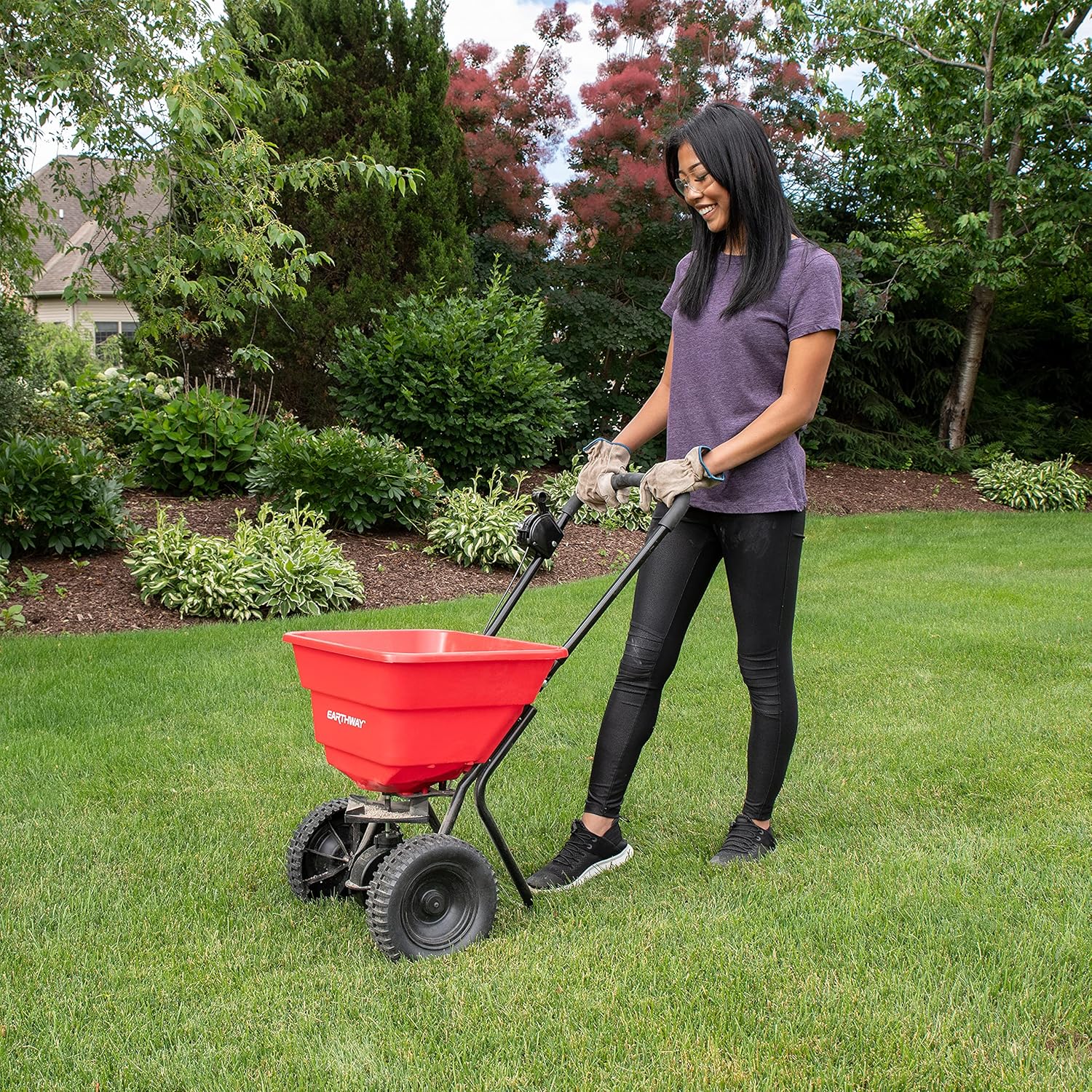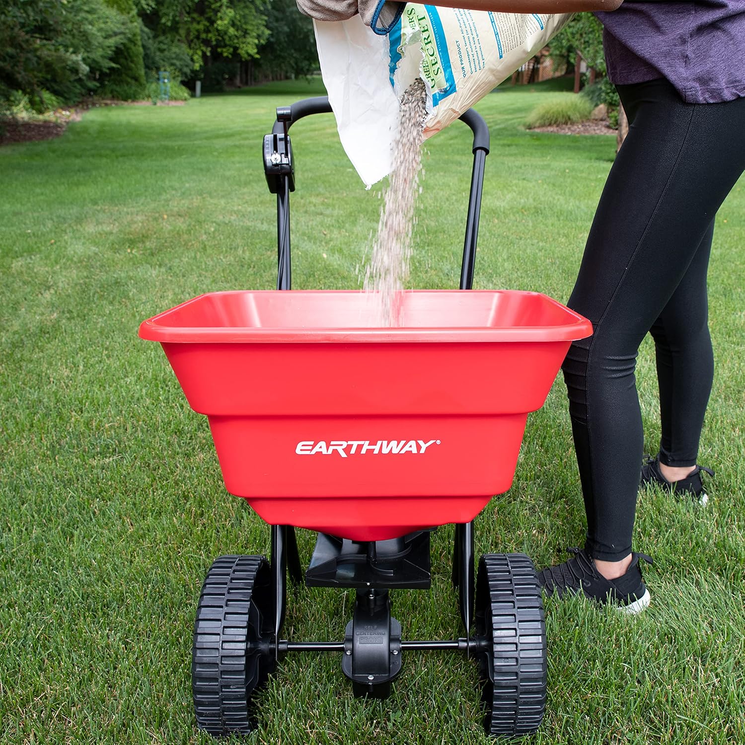 EarthWay 2050SU 80 LB (36 KG) Deluxe Heavy-Duty Walk-Behind Commercial Broadcast Spreader Pre-Assembled with 10 inch Poly Tires, Built-in Side Spread Control