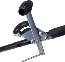 - Epoxy coated steel frame and adjustable solid linkage controls were designed to last through even the toughest winter conditions. Linkage connects adjustable T-handle. Handle can adjust for those around 6 foot or taller.