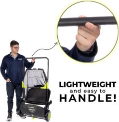 The Earthwise push sweeper has a lightweight design that is easy to maneuver, and can easily be transferred anywhere in the yard. The mower leaf bag makes collecting debris easy and convenient. Once the yard work is complete, the sweeper can easily be stored in the shed or on the garage wall.